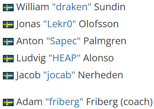 这支瑞典战队将进入European Pro League Series 4赛事,同期也已报名行将于1月16日开赛的PLAYR Masters Season 1。