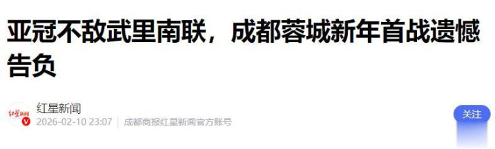 红星新闻——亚冠不敌武里南联,成齐蓉城新年首战缺憾告负